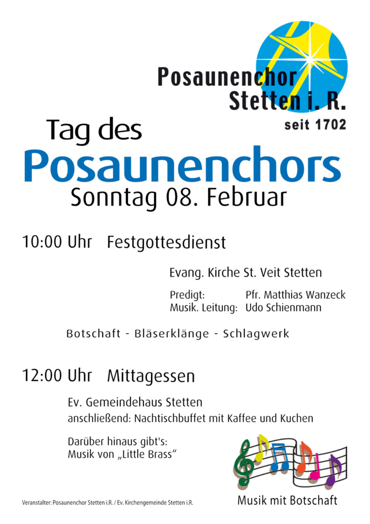 Der Posaunenchor Stetten i.R. ist Teil der evangelischen Kirchengemeinde und wurde bereits im Jahr 1702 unter dem Namen „Kirchenmusici“ ins Leben gerufen.